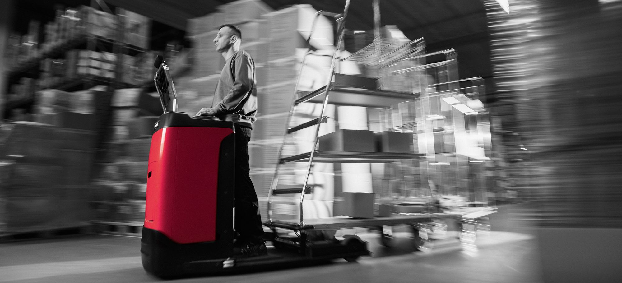 När vagn och truck är fullt integrerade behöver du inte koppla på långa tåg av vagnar. Den kompakta lösningen gör gångvägarna kortare, minskar antalet moment och skapar ett mer effektivt flöde genom lagret. Resultatet är snabbare plock, mindre belastning på personalen och en mer lättstyrd arbetssituation.